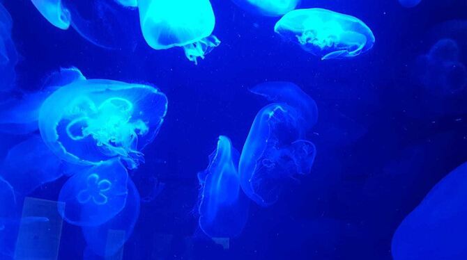 Wilhelma-Besuch: Blau leuchtende Quallen tanzen in ihrem Auqarium