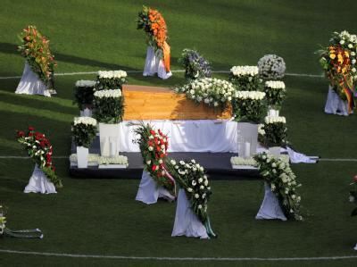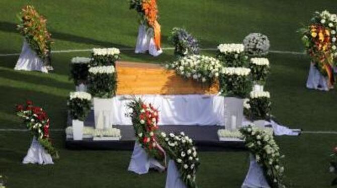 HANNOVER. Weiße Rosen, bewegende Worte und viele Tränen: Bei einer emotionalen Zeremonie haben etwa 40 000 Menschen Abschied von Robert Enke genommen. Mit klassischer Musik und Ansprachen wurde in der größten Trauerfeier der deutschen Sportgeschichte des Nationaltorwarts gedacht, der sich 10. November im Alter von 32 Jahren das Leben genommen hatte. Der Sarg Enkes war im Mittelkreis des Stadions in Hannover aufgebahrt. Seine Witwe Teresa saß mit Familienangehörigen und Freunden auf einem am Spielfeldrand aufgebauten Podest.