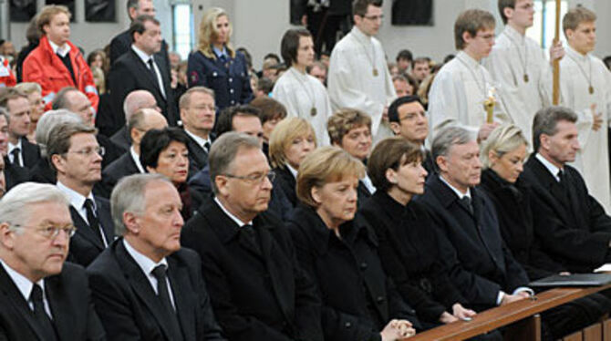 Gemeinsam mit dem Volk trauern Bundespräsident Köhler, Kanzlerin Merkel und Baden-Württembergs Ministerpräsident Oettinger beim Gedenkgottesdienst für die Opfer des Amoklaufs.