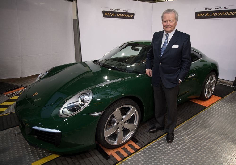 Der Porsche-Aufsichtsratsvorsitzende Wolfgang Porsche steht im Porsche-Stammwerk in Stuttgart-Zuffenhausen vor dem nach Herstellerangaben eine millionsten Sportwagen Porsche 911, einem 911 Carrera S.
