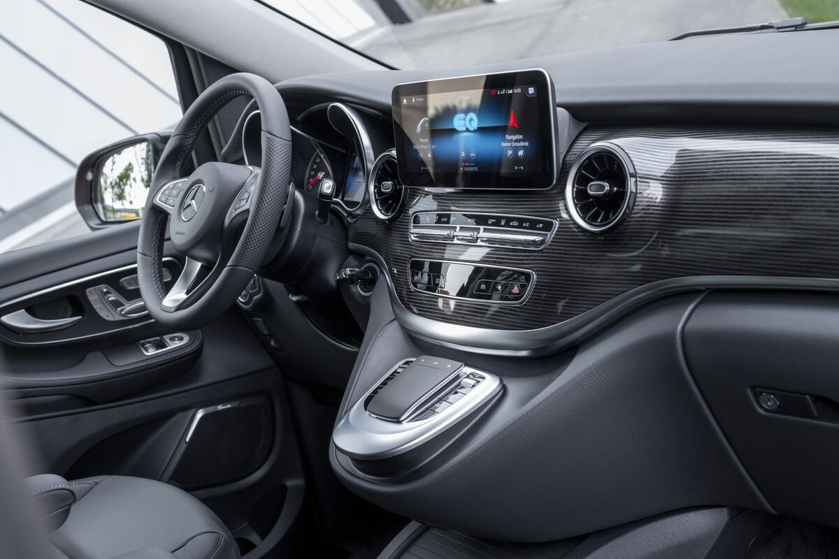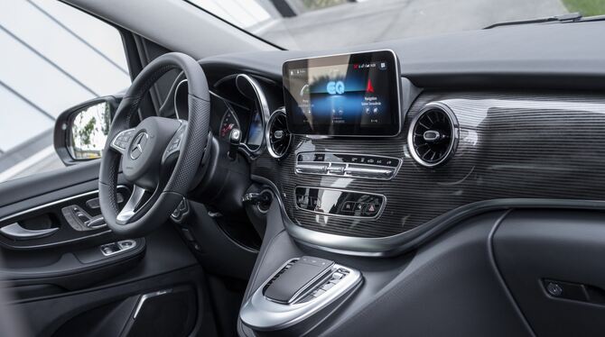 In Leder, Aluminium und Streifenoptik: der Mercedes-Benz EQV Avantgarde Line.