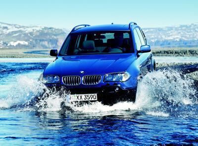 Wenn nötig ist eine Wasserdurchfahrt für den BMW X3 kein Problem. Kraftvoll aufgestellte Radhäuser, markante Front, langer Radstand, kurze Überhänge und hinten abfallende Dachlinie betonen seine Eigenständigkeit.