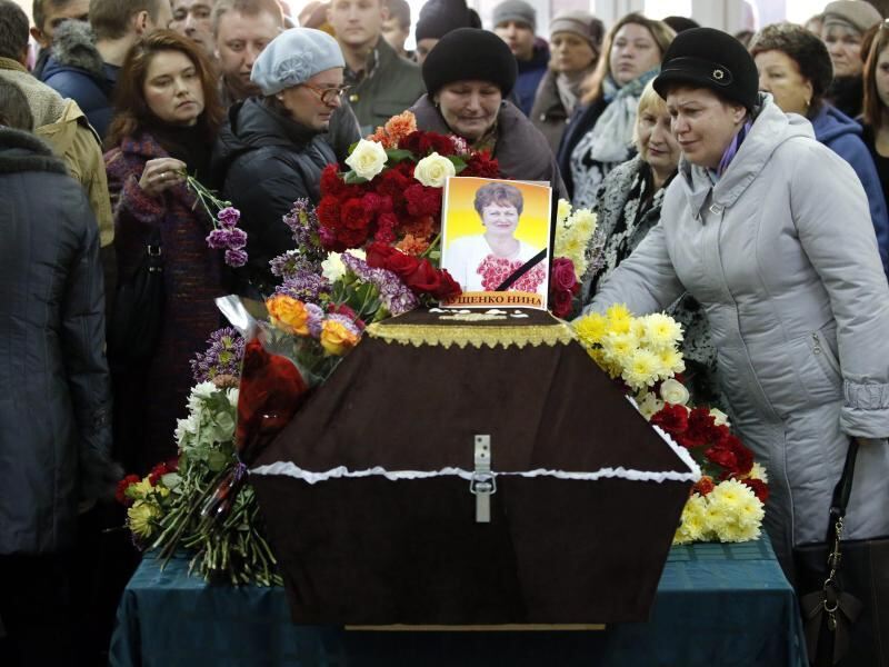 Trauer in Russland: Angehörige und Freunde nehmen in Velikiy Novgorod Abschied von Nina Lushchenko, einem Opfer des Absturzes. Foto: Anatoly Maltsev