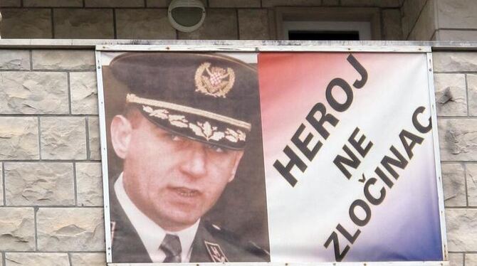 Ein Porträt des nun verurteilten Ante Gotovina auf einem großflächigem Plakat an einem Privathaus im kroatischen Urlauberort Baska Voda. (Archivbild)