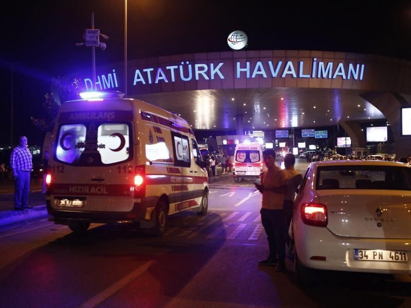 Rettungsfahrzeuge vor dem Istanbuler Flughafen Atatürk. Foto: Sedat Suna