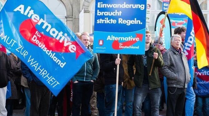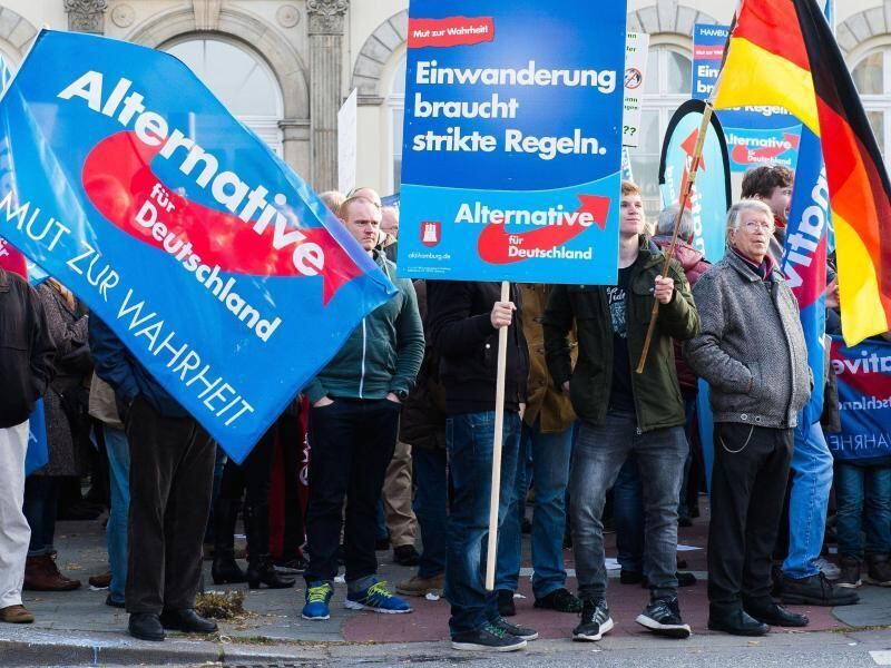 AfD-Anhänger während einer Kundgebung in Hamburg. Foto: Daniel Bockwoldt/Archiv