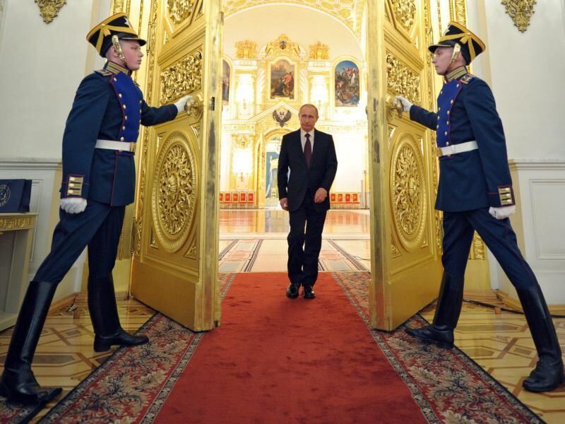 Symbole der Macht: Uniformierte halten eine vergoldete Tür für Wladimir Putin auf. Foto: Alexey Druzhinin / Ria Novosti