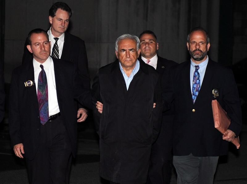 IWF-Chef Dominique Strauss-Kahn wird von der New Yorker Polizei abgeführt.