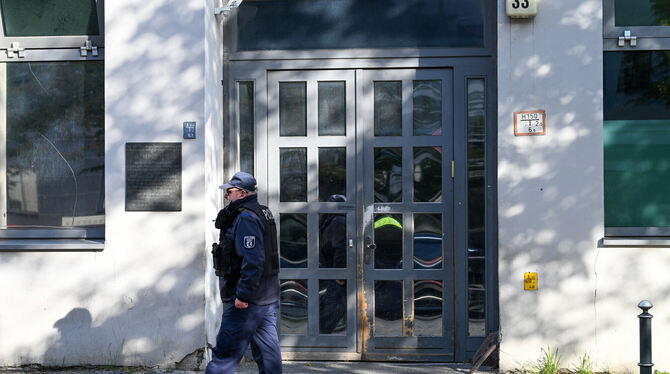 Ein Polizeibeamter geht an der Synagoge in Berlin entlang, die Ziel eines Anschlags war.