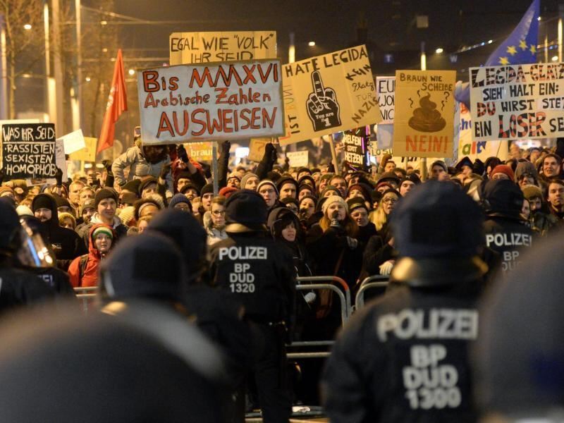 Leipziger und Gäste der Stadt demonstrieren gegen die Legida-Demo. Foto: Peter Endig
