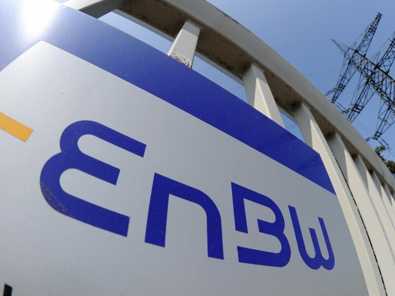 Das Logo des Energieversorgers Energie Baden-Württenmberg (EnBW) an einem Umspannwerk in Karlsruhe. Foto: Uli Deck