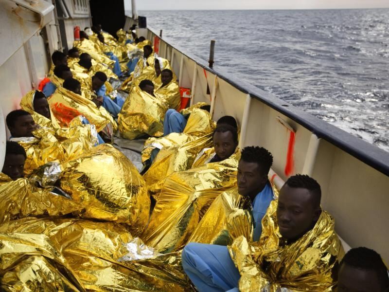 Flüchtlinge ruhen sich an Deck des Rettungsbootes »Golfo Azzurro« aus, nachdem sie vor der libyschen Küste gerettet wurden. Foto: Emilio Morenatti