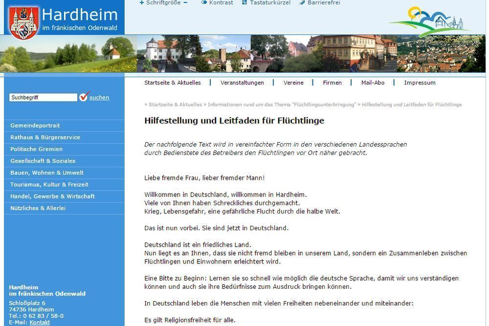 HARDHEIM. »Deutschland ist ein sauberes Land und das soll es bleiben!«: Eine Gemeinde im Odenwald macht mit einem Verhaltenskodex für Flüchtlinge Schlagzeilen. Kritikern zufolge nährt das Vorurteile und Hass.