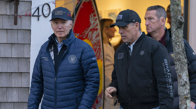 US-Präsident Joe Biden (links) und sein Sohn Hunter Biden spazieren in der Innenstadt von Nantucket, Massachusetts. Der scheidende US-Präsident Biden hat entgegen vorheriger Aussagen seinen Sohn Hunter nun doch begnadigt.