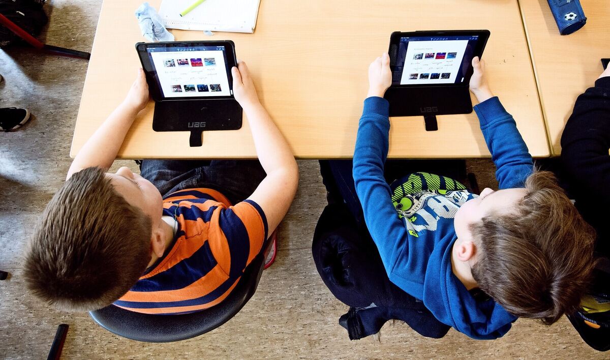 Schüler einer 5. Klasse lernen mit iPads im Englischunterricht. FOTO: STRATENSCHULTE/DPA