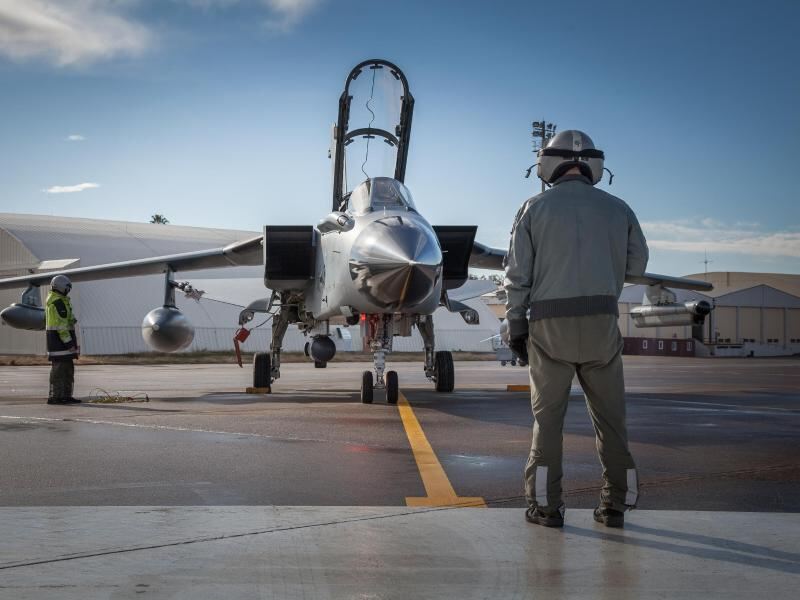 Ein Pilot und ein Techniker arbeiten in Incirlik an einem Recce-Tornado der Bundeswehr. Foto: Bundeswehr