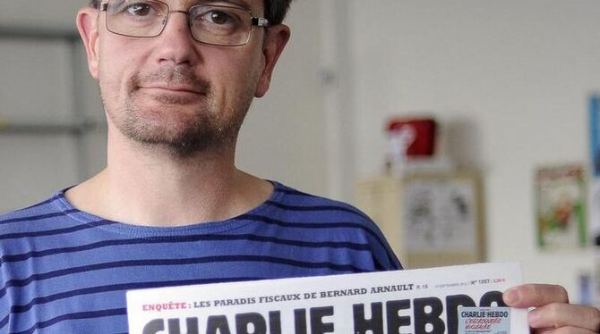 Stephane Charbonnier alias Charb, Herausgeber und Zeichner von »Charlie Hebdo«, zeigt eine Titelseite seiner Zeitung. Foto: Yoan Valat/Archiv