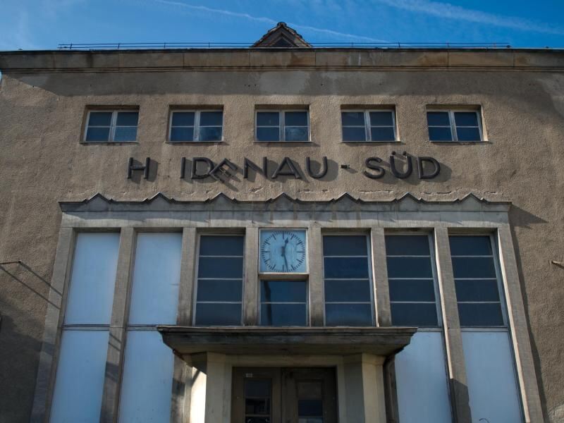 Hier hängt einiges schief: Am ehemaligen Bahnhof Heidenau-Süd fehlt ein Buchstabe, und die Uhr ist stehen geblieben. Foto: Arno Burgi