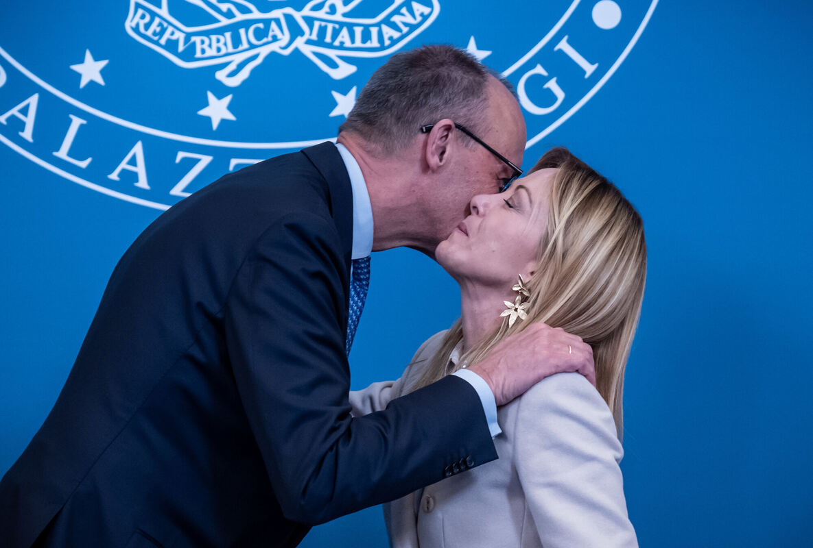 Bundeskanzler Friedrich Merz (CDU) verabschiedet sich von Giorgia Meloni, Ministerpräsidentin von Italien, bei den Deutsch-italienischen Regierungskonsultationen in Rom.