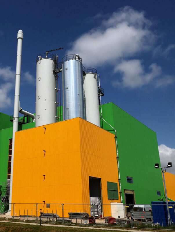 Die im Bau befindliche Klärschlammverbrennungsanlage in Stavenhagen in Mecklenburg-Vorpommern soll Wärmeenergie für das Fernwärmenetz der Stadt liefern. Sie ist die größte Anlage ihrer Art im Nordosten. FOTO: WÜSTNECK/DPA