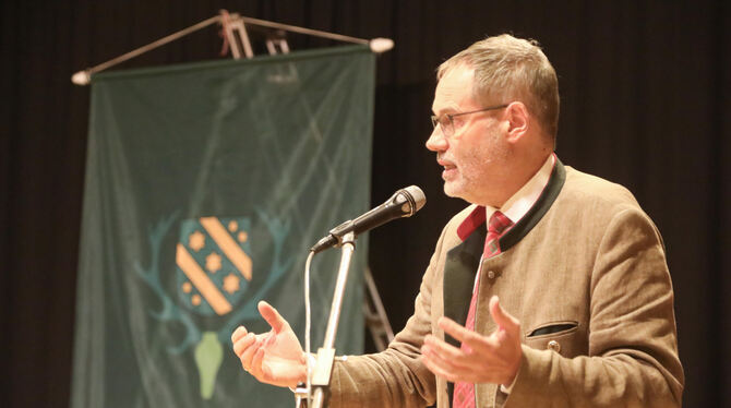 Landesjägermeister Dr. Jörg Friedmann machte deutlich auf die Herausforderungen der Jäger in Sachen Wolf aufmerksam.