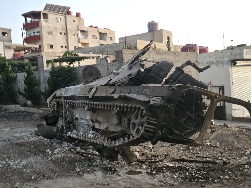 Nach heftigen Gefechten bleibt zerstörte Militärtechnik in der südsyrischen Stadt zurück.