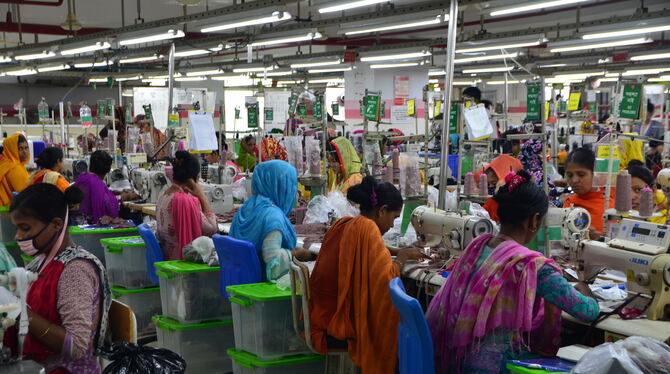 Dicht an dicht sitzen die Näherinnen in der Hot Lun Fabrik in Bangladeschs Hauptstadt Dhaka. 800 nähen auf einem einzigen Stockwerk Spitzenunterwäsche für deutsche Marken wie H+M und Primark. Die Kleidungsfabrik ist ein Vorzeigebetrieb.