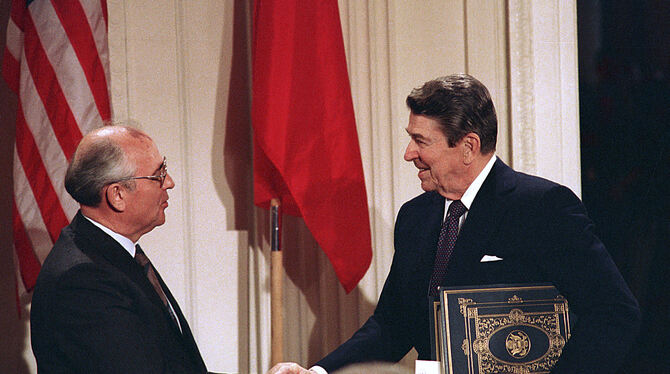 In den 1980er-Jahren schlossen die Sowjetunion und die USA Verträge zur atomaren Abrüstung. 1987 etwa unterzeichneten Gorbatschow und US-Präsident Ronald Reagan den INF-Vertrag (Vertrag über nukleare Mittelstreckensysteme).