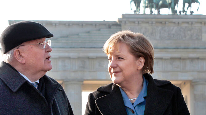Vom Westen war Gorbatschow – hier mit der damaligen deutschen Kanzlerin Angela Merkel 2011 vor dem Brandenburger Tor – enttäuscht. Er beklagte das »Triumphgehabe« des Westens und kritisierte die Osterweiterung der Nato als Verrat. Für ihre Rolle im Ukraine-Krieg geißelte er alle beteiligten Parteien scharf. Zwar lehnte er Russlands Angriff ab, zugleich hielt er jedoch die westlichen Strafmaßnahmen für kontrapoduktiv. »Die Sanktionen haben nur eine einzige Wirkung«, lautete sein verheerendes Urteil. »Die gegenseitige Entfremdung nimmt zu.«