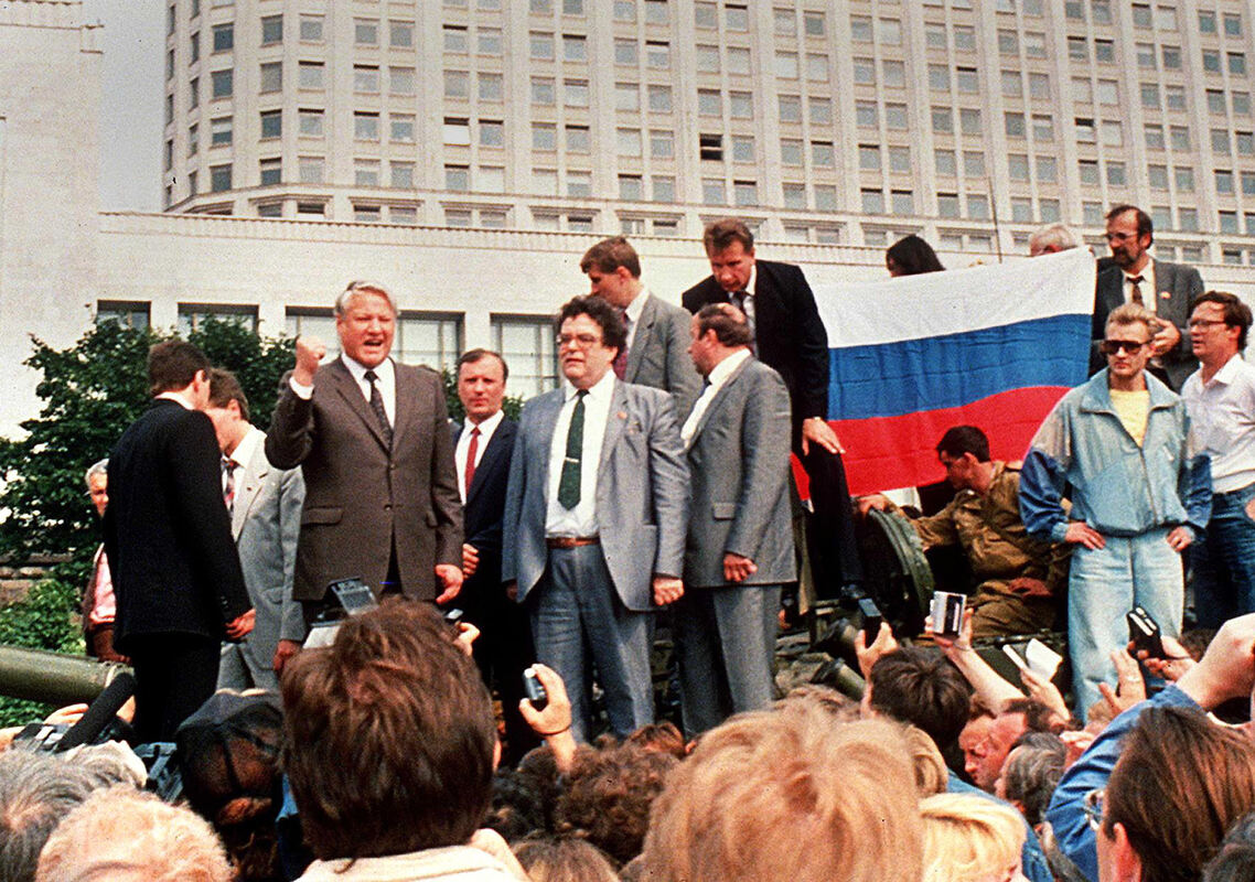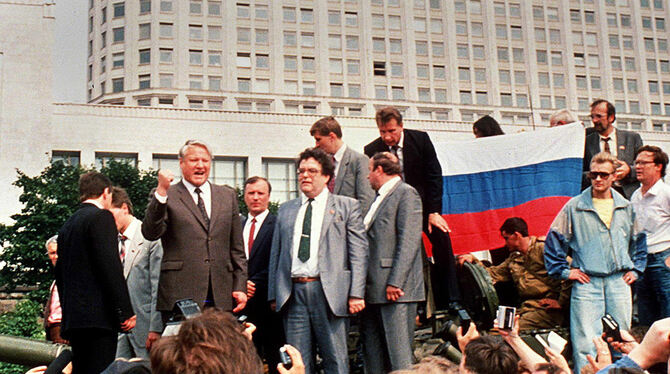 Eigentlich wollte Gorbatschow den Kommunismus nur modernisieren. Doch seine Reformen führten zum Zerfall des Machtimperiums. Viele seiner Mitbürger nahmen ihm das übel. In ihren Augen war er der »Totengräber der Sowjetunion«. Nach einem Putschversuch in Moskau ergriff Boris Jelzin (links) 1991 die Macht. Kurz darauf trat Gorbatschow offiziell vom Amt des Staatspräsidenten zurück und die Sowjetunion gehörte der Vergangenheit an.
