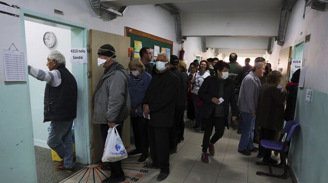 Menschen warten in Ankara auf ihre Stimmabgabe. Laut Beobachtern lief alles regulär ab. FOTO: DPA