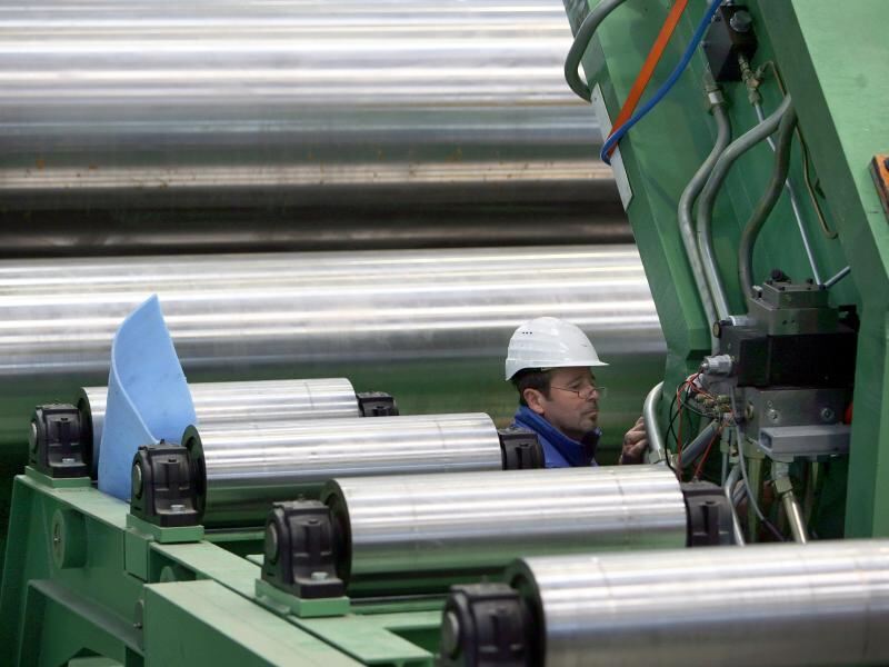 Biegewalze in der Fertigungshalle der EEW Special Pipe Constructions Rostock: Hier werden auch Rohre für die Öl- und Gasindustrie gefertigt. Foto: Jens Büttner/Archiv