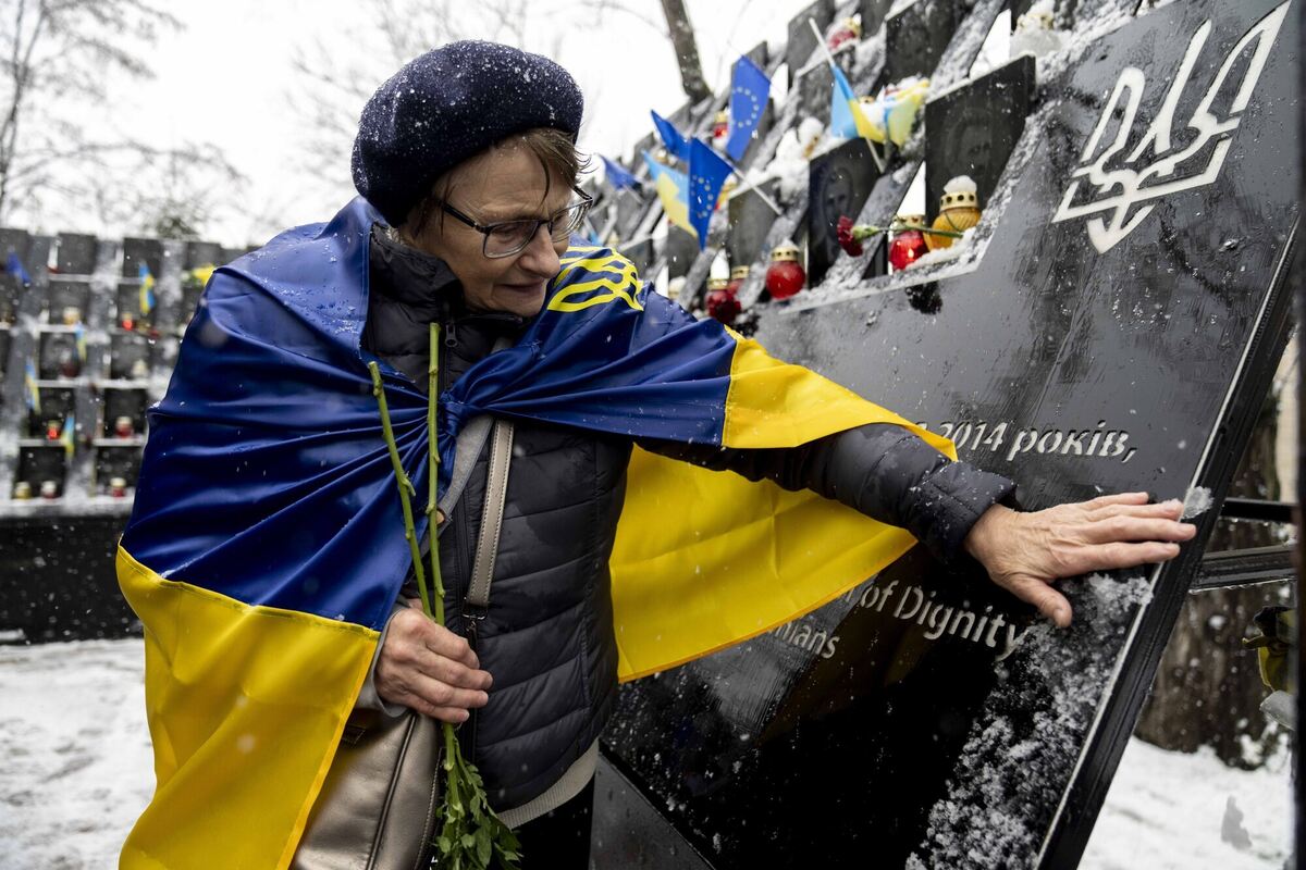 Eine Frau gedenkt in Kiew der Menschen, die beim Euromaidan-Protest im Winter 2013/14 ums Leben kamen. Damals demonstrierten Millionen Ukrainer für die Annäherung ihres Landes an die Europäische Union. Russland reagierte mit der Krim-Annexion.