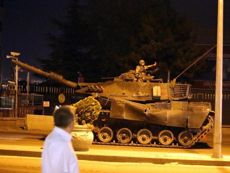 Ein Panzer fährt in der Nacht des Putschversuchs durch die Straßen von Ankara. Foto: epa/str