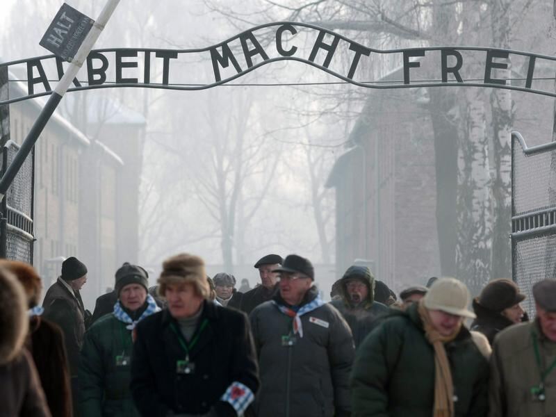 Ältere Besucher in Auschwitz-Birkenau. Foto: Leszek Szymanski / Archiv