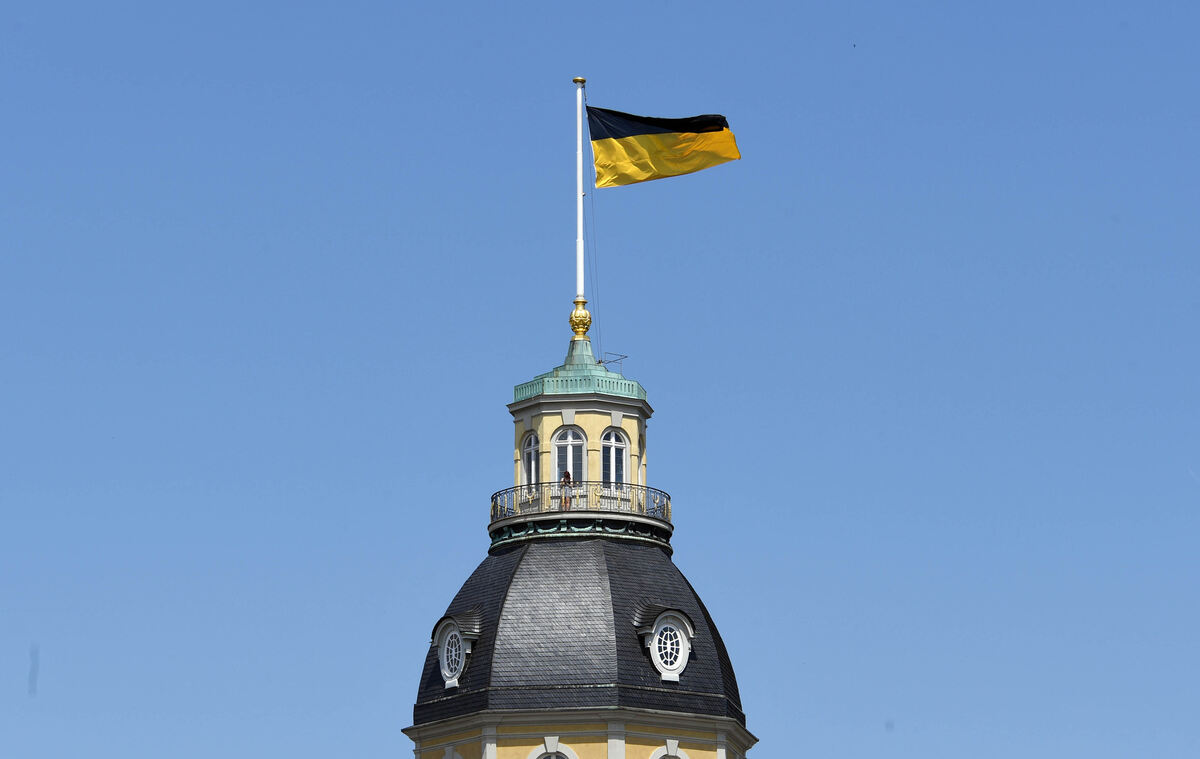 Auf dem Karlsruher Schlossturm weht die Landesflagge von Baden-Württemberg.