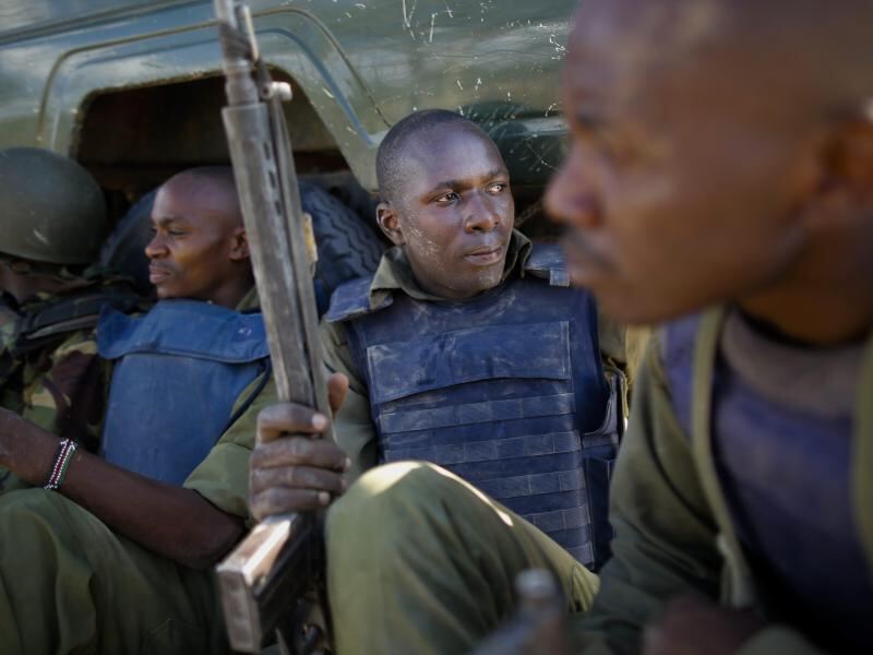 Erschöpfte kenianische Soldaten nach dem Kampf um die Universität von Garissa, wo Islamisten fast 150 Menschen ermordeten. Foto: Dai Kurokawa