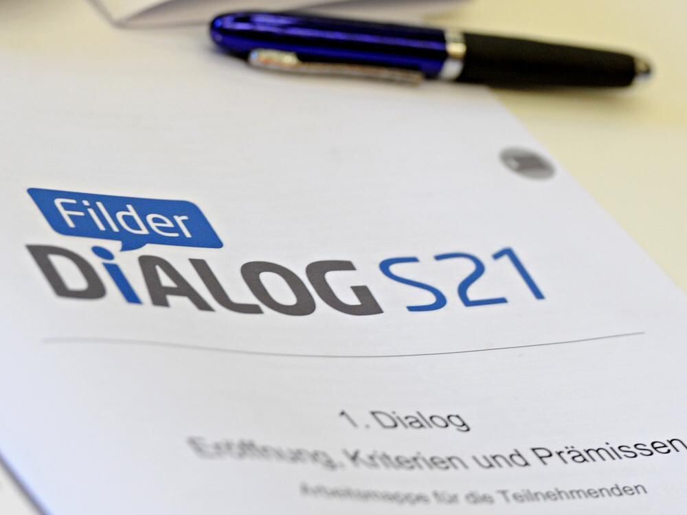 Unterlagen zum Filderdialog liegen auf dem Tisch.