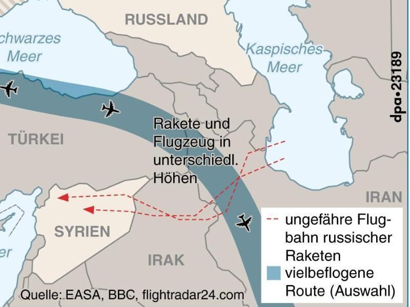 Fluglinien beunruhigt wegen russischer Raketen auf Syrien