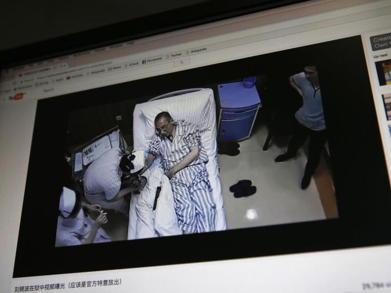 Das Videobild zeigt den chinesischen Friedensnobelpreisträger Liu Xiaobo in einem Krankenhaus in Peking. Foto: Andy Wong