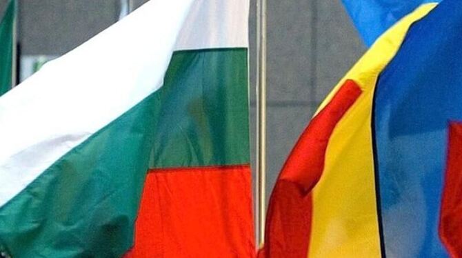 Die Flaggen von Bulgarien (L) und Rumänien flattern im Wind. Bundesinnenminister Friedrich will den Schengen-Beitritt der Länder verhindern. Foto: Srdjan Suki
