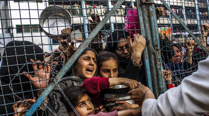 Prekäre humanitäre Lage: Palästinensische Flüchtlinge in Gaza drängen sich vor der Essensausgabe.