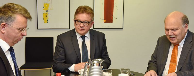 Guido Wolf (Mitte) verspricht beim Redaktionsgespräch mit GEA-Verleger Valdo Lehari jr. (rechts) und Politik-Chef Davor Cvrlje einen Paradigmenwechsel in der Verkehrspolitik.