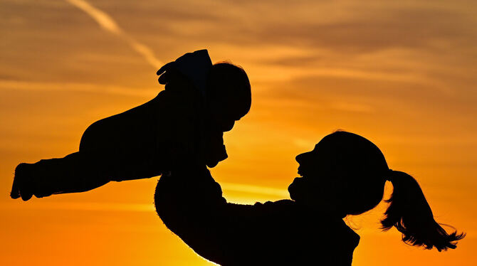 Was ist Glück? Diese Mutter jedenfalls erlebt mit ihrem Baby einen schönen Moment in der Abendsonne.