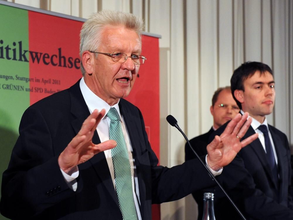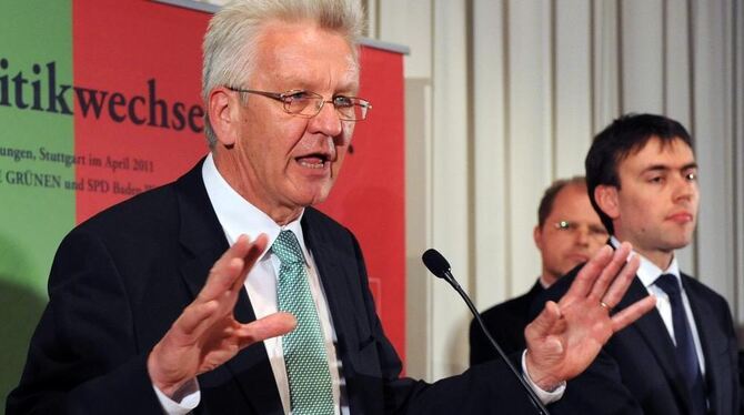 Der designierte Ministerpräsident Winfried Kretschmann links neben Vize-Regierungschef und Superminister für Finanzen und Wirtschaft Nils Schmid.