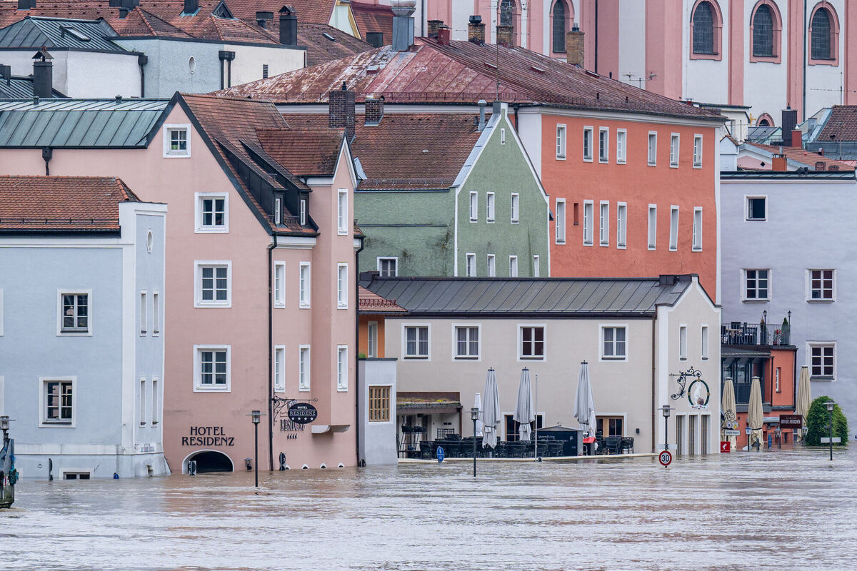 Land unter in Passau. Geht es nach den meisten Fraktionen im Bundestag, soll eine Versicherung gegen Elementarschäden verpflichtend werden. FOTO: WEIGEL/DPA
