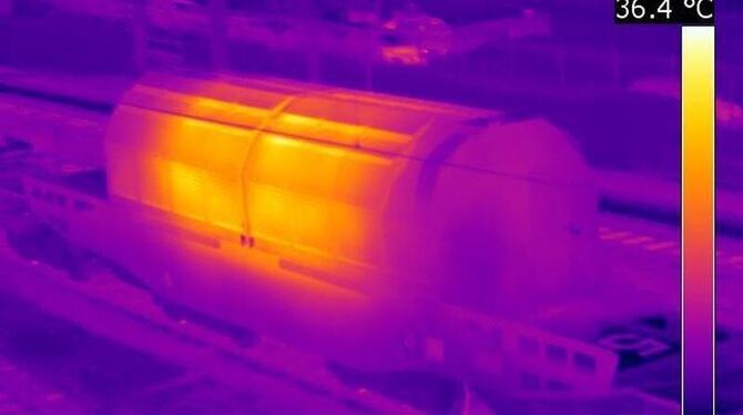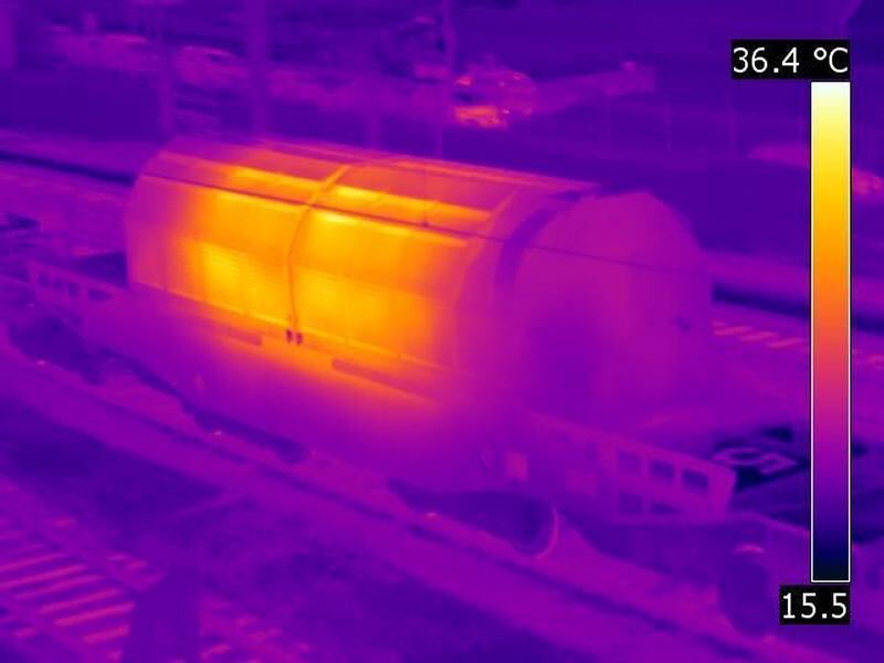 Thermografie-Aufnahmen der Castorbehälter, die den Verladebahnhof Valognes (Frankreich) verlassen. Foto: Greenpeace