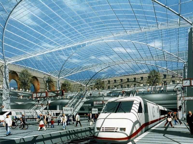 2001 genehmigte der DB-Aufsichtsrat das Bahnprojekt »Stuttgart 21«. Visualisierung: Aldinger und Wolf