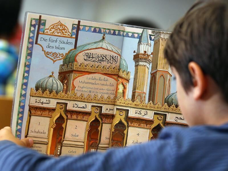 Ein Junge liest während des islamischen Religionsunterrichts in einem Schulbuch. Foto: Oliver Berg/Archiv