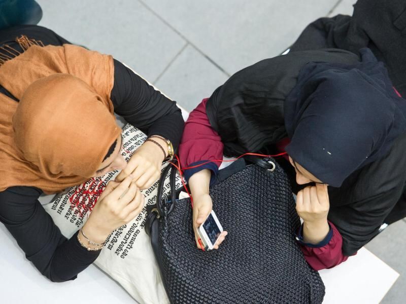 Zwei muslimische Studentinnen in der Europa-Universität Viadrina in Frankfurt (Oder): In Deutschland leben so viele Ausländer wie nie zuvor. Foto: Patrick Pleul/Archiv